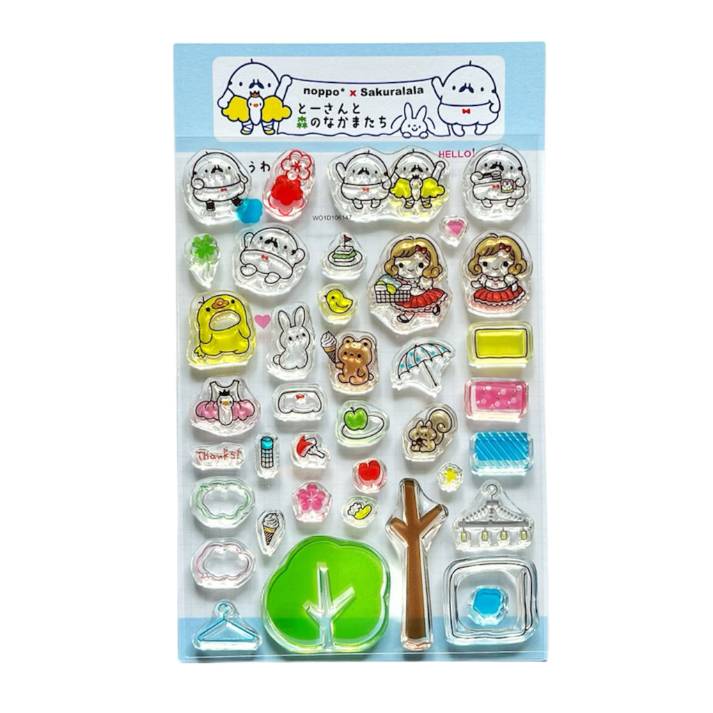はんこ屋noppo*さん(ノッポ)さんとのコラボレーション第一弾は、薄毛ゆるキャラ「とーさん」!森のなかまたちと楽しいひとときがクリアスタンプになりました。