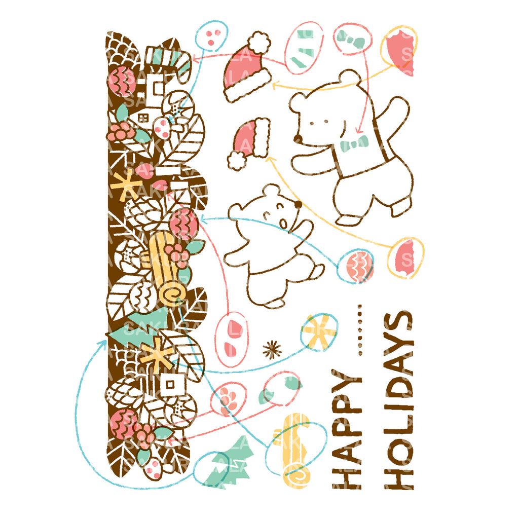 The big bear and the little bear are cute " 365: Christmas Greetings ". Santa's hat is a separate stamp, so the bears can be used all year round! The Christmas garland is 4x6 size, so you can print it on Christmas cards, planners, and greeting cards to create a warm Christmas atmosphere. Happy Holidays!!!