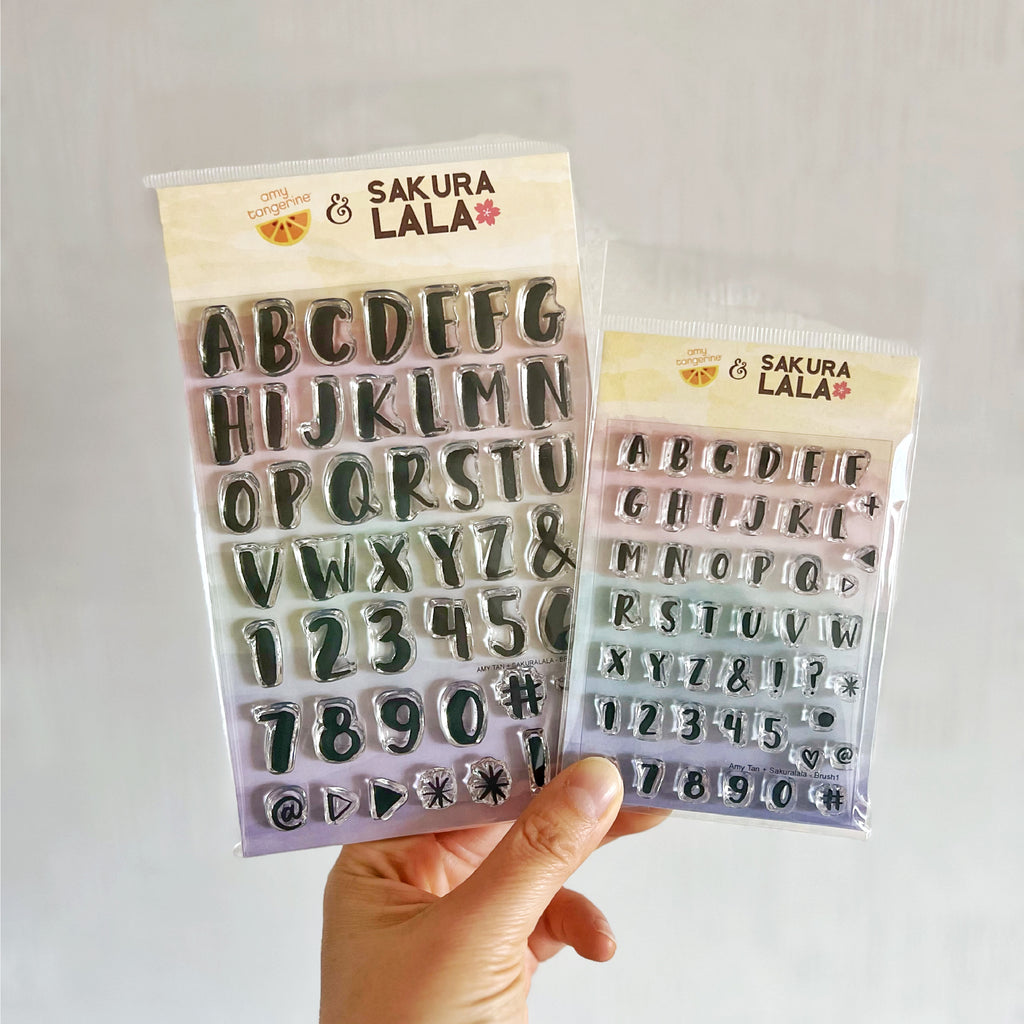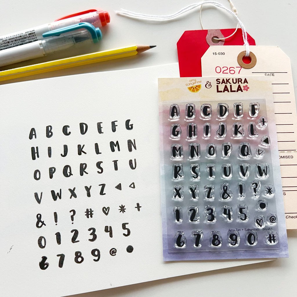 Our fifth collaboration with Amy Tangerine is a mini version of the wildly popular "Brush1" alphabet stamp ! Amy's bold and adorable brush lettering will brighten up any planner or journal page. Enjoy a variety of styles by using the large (4x6) and small (3x4) sizes, or combining them, depending on the situation.